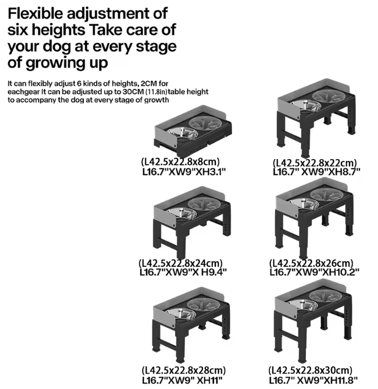 Ideal for pet owners who prioritize ergonomics, hygiene, and everyday practicality, this adjustable raised dog feeder helps dogs eat healthier and more comfortably.